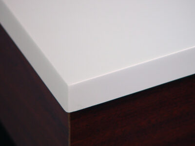 - Solid Surface Porcelain Top with Integrated Dual Basins – One-piece porcelain vanity top with built-in sinks, overflow drains, and single-hole faucet drilling for durability and easy sanitation