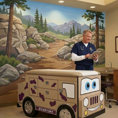 Ride the Pony pediatric exam table quicker more fun exam. Save your back as patients climb up the two-step walk up with non-skid surface. The Pony has plenty of room for supplies in the lockable cabinets with adjustable shelves and the concealed paper holder readily accepts 18″ x 125′ rolls. This pediatric exam table will win over your patients every ride.