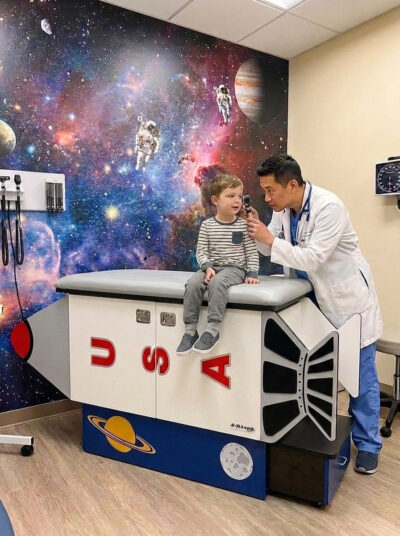 - Patent # D551768S – Exclusive rocket-themed pediatric exam table design