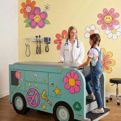 - Smartphone-Themed Pediatric Exam Table – Highly engaging design improves patient cooperation